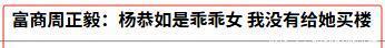 这意思就是,不承认,不负责,不担责。 眼看富豪如此没担当,深陷舆论风暴中央的杨恭如敢怒不敢言,因为害怕被别人继续辱骂是“HU狸精”,索性大门不出二门不迈,天天躲在家里,以此来逃避流言。